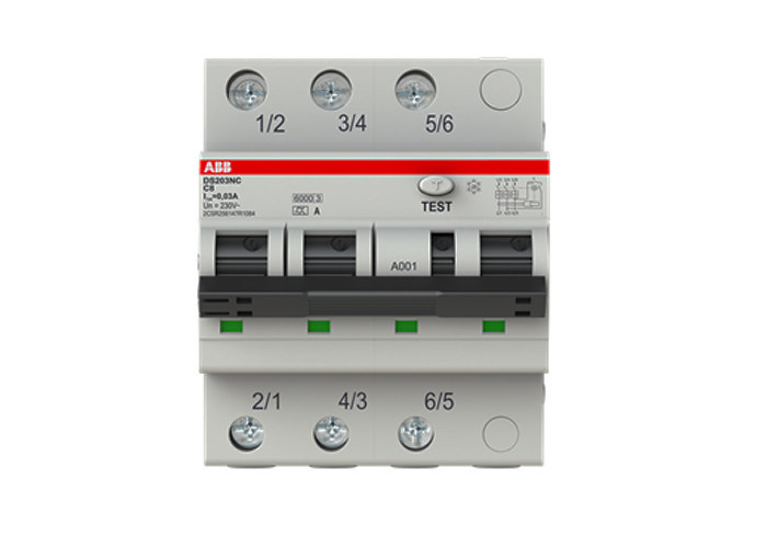 DS203NC 230V es un disyuntor actual residual 3P+N con la protección de la sobreintensidad de corriente (RCBO) en cuatro módulos para la protección contra corrientes del cortocircuito, sobrecarga, corrientes de falta de tierra, contactos indirectos, protección adicional contra los contactos directos (30 versiones del mA). La nueva serie es conveniente para la instalación en sistemas de las TIC 3P sin neutral con 230V entre las fases.